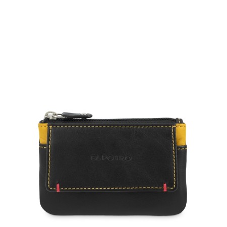 Monedero de cremallera con bolsillo trasero con cremallera y delantero con solapa. Interior con argolla para llaves.
